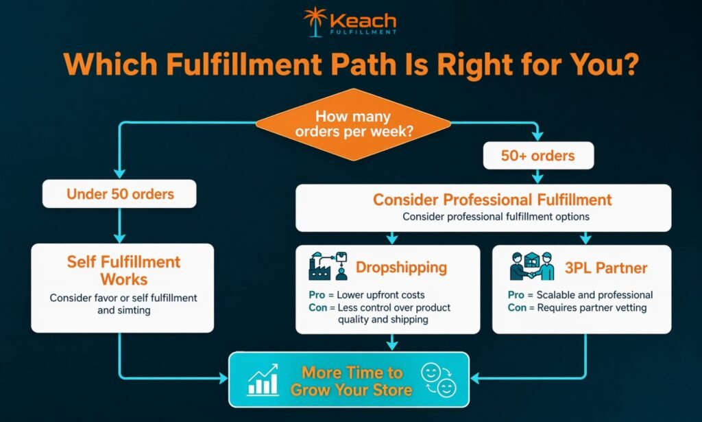 | Self Fulfillment | Under 50 orders per week | High time cost, does not scale |